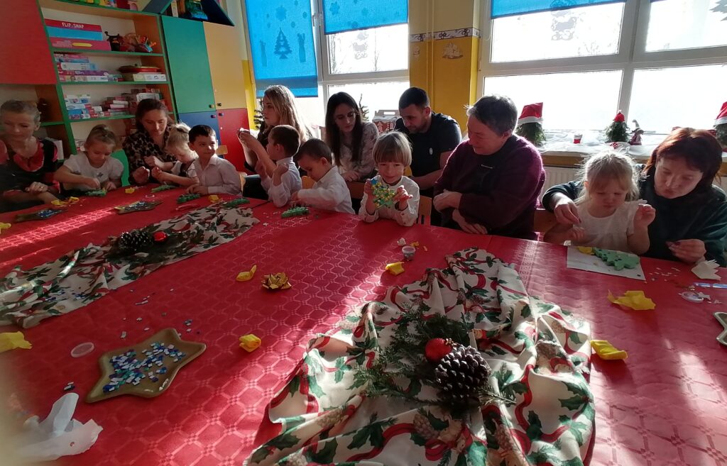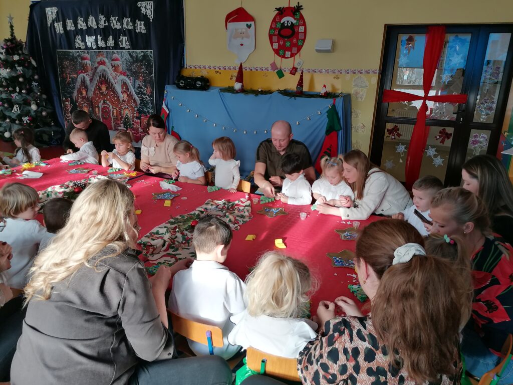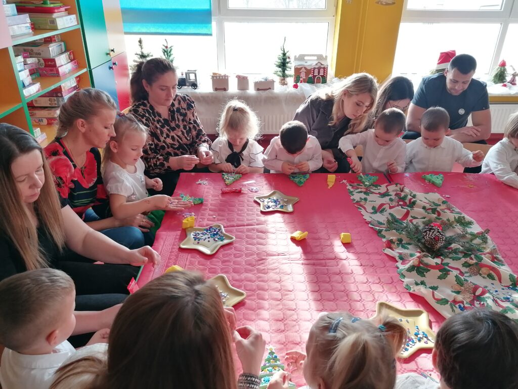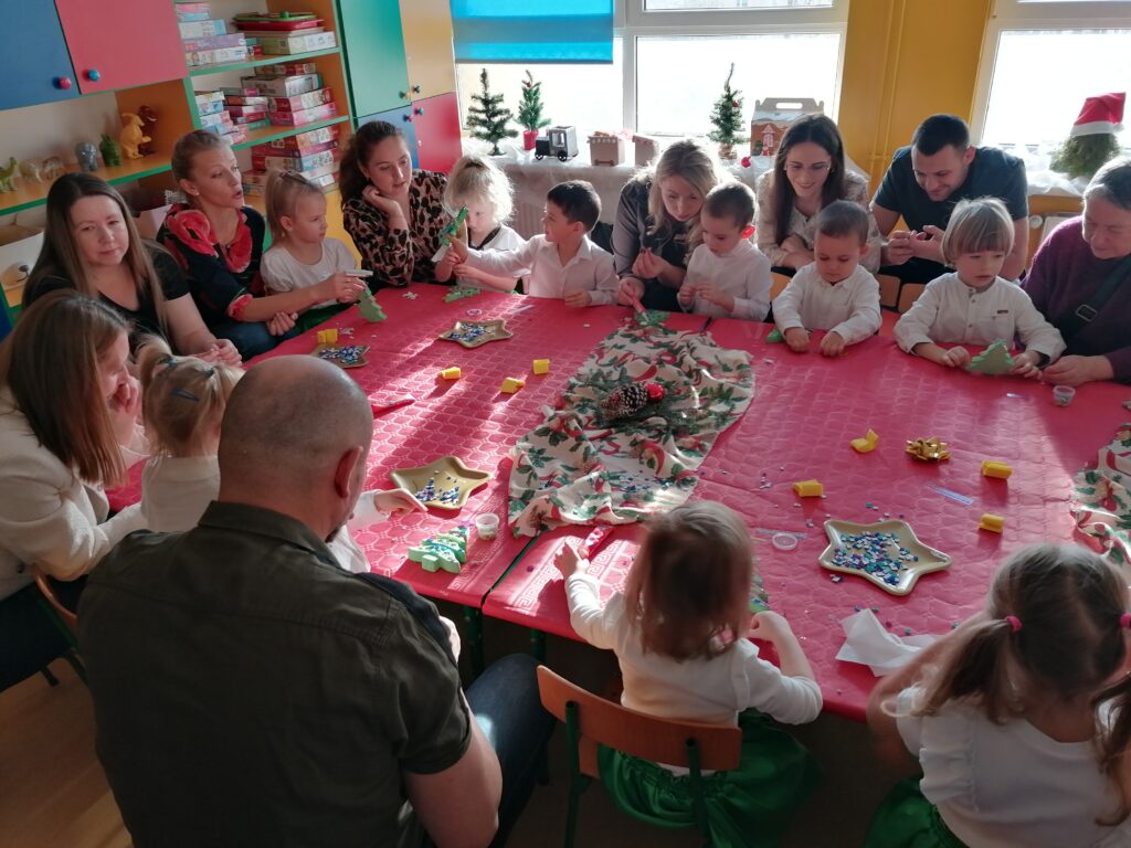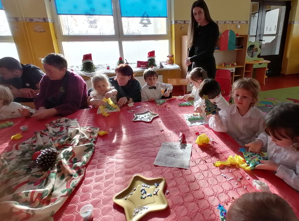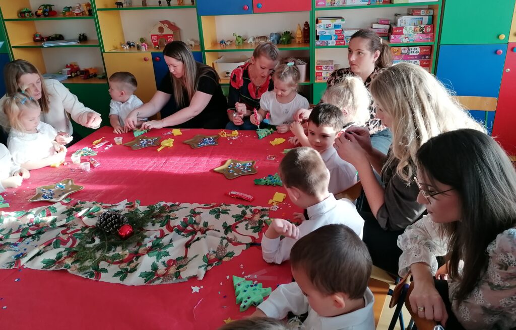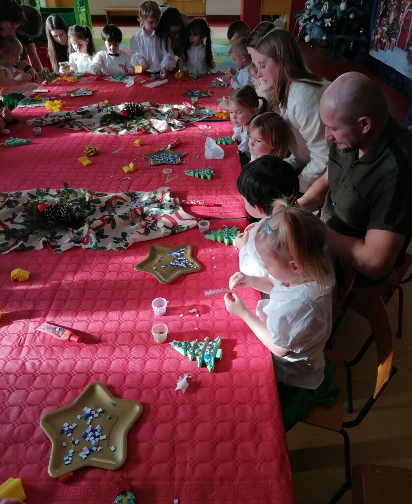 16 grudnia grupie Sasanki odbyły się warsztaty świąteczne. Dzieci wraz z rodzicami z zaangażowaniem dekorowały choineczki, wykorzystując kolorowe ozdoby oraz własnoręcznie wykonane dekoracje. Spotkanie przebiegło w radosnej, ciepłej atmosferze. Wspólna praca sprzyjała integracji grupy, a udekorowane choineczki stały się pięknym symbolem nadchodzących świąt. Dziękujemy Rodzicom za obecność i zaangażowanie.