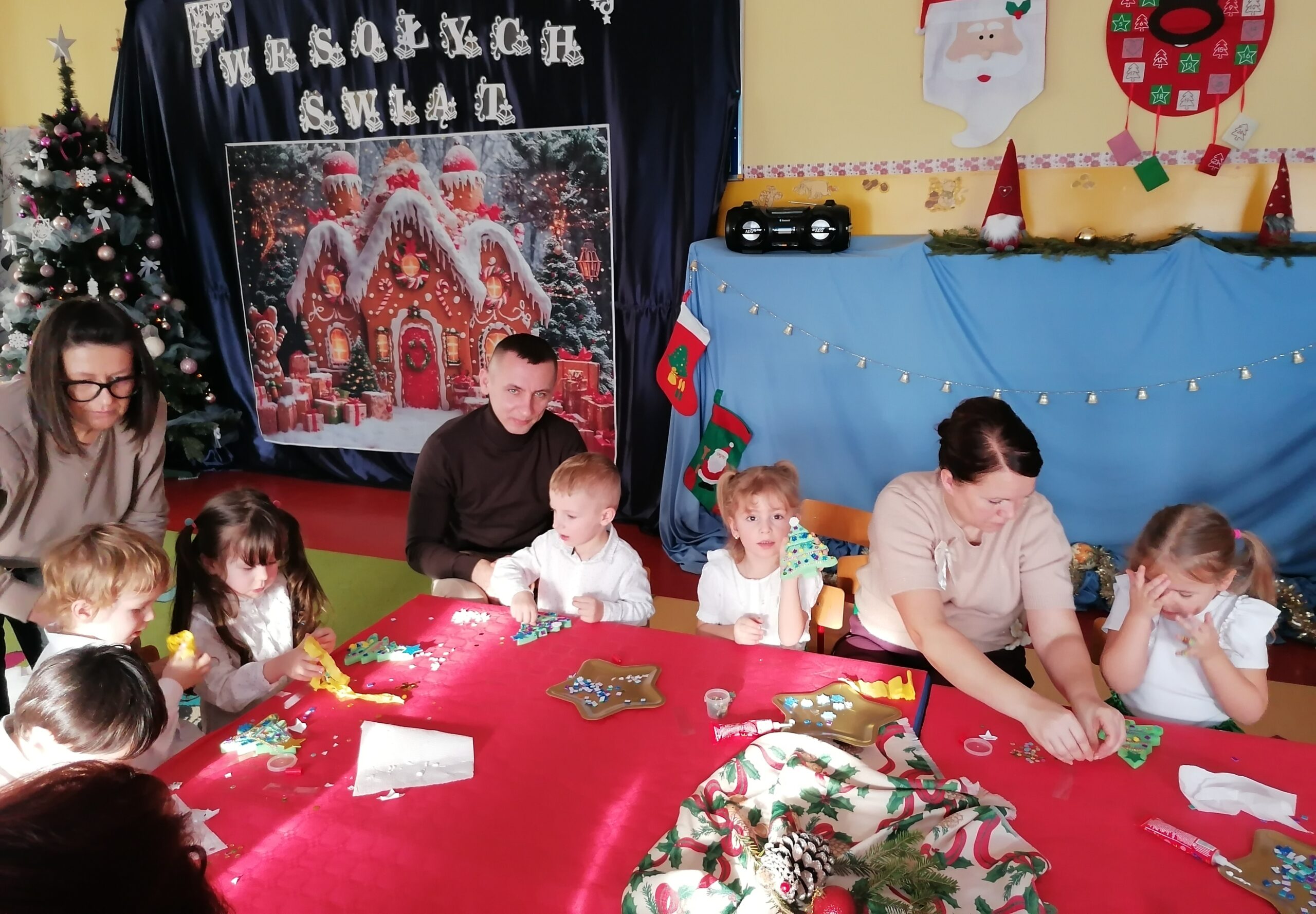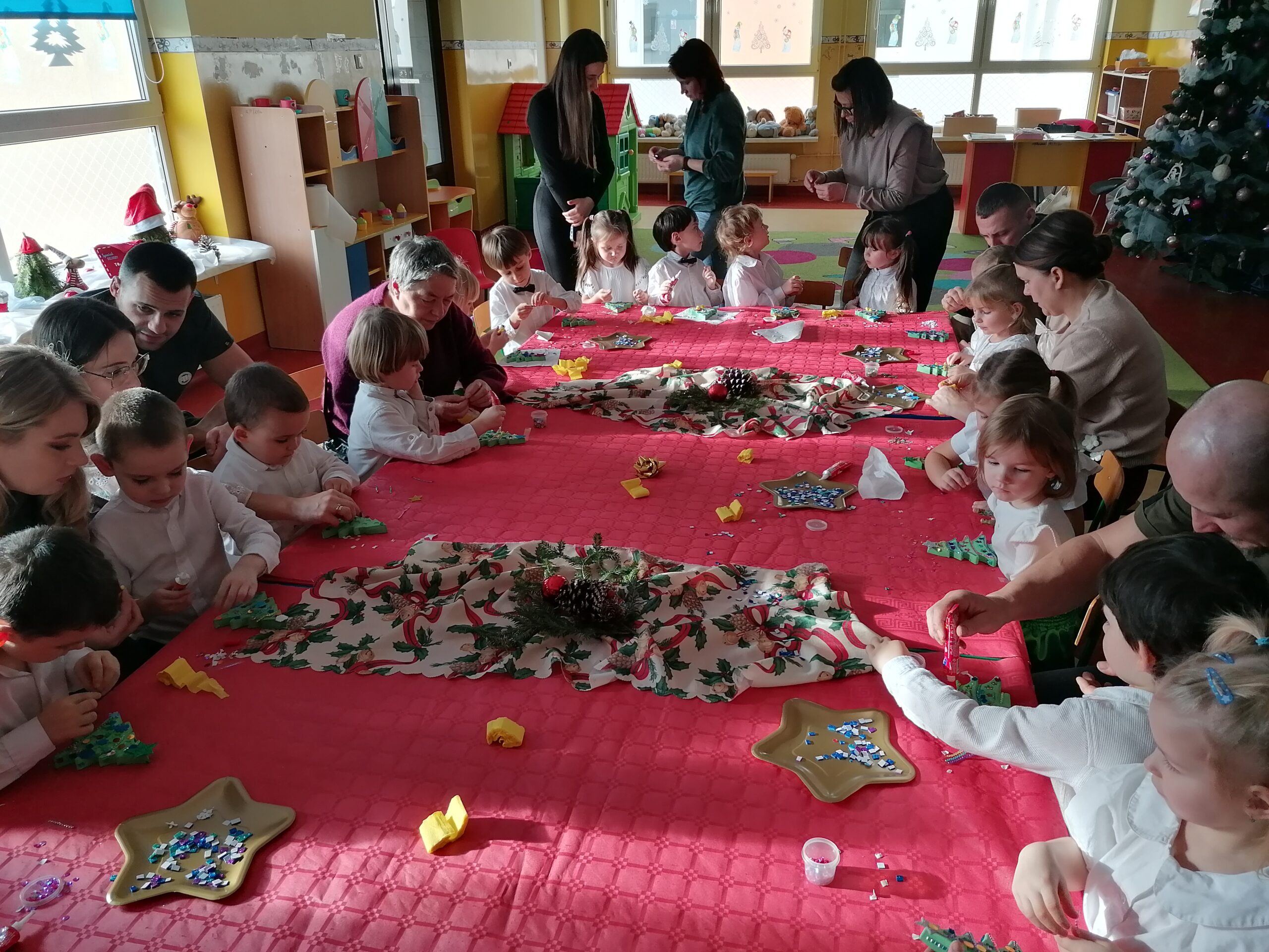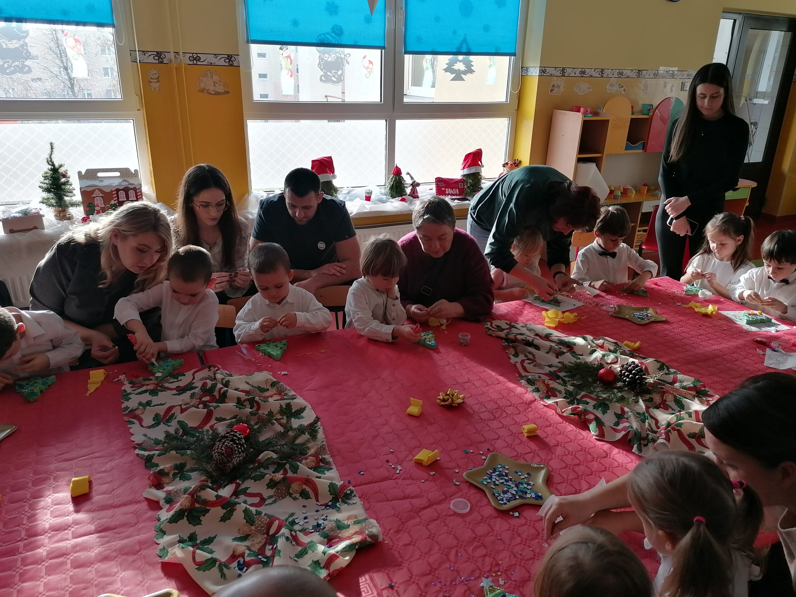 16 grudnia grupie Sasanki odbyły się warsztaty świąteczne. Dzieci wraz z rodzicami z zaangażowaniem dekorowały choineczki, wykorzystując kolorowe ozdoby oraz własnoręcznie wykonane dekoracje. Spotkanie przebiegło w radosnej, ciepłej atmosferze. Wspólna praca sprzyjała integracji grupy, a udekorowane choineczki stały się pięknym symbolem nadchodzących świąt. Dziękujemy Rodzicom za obecność i zaangażowanie.