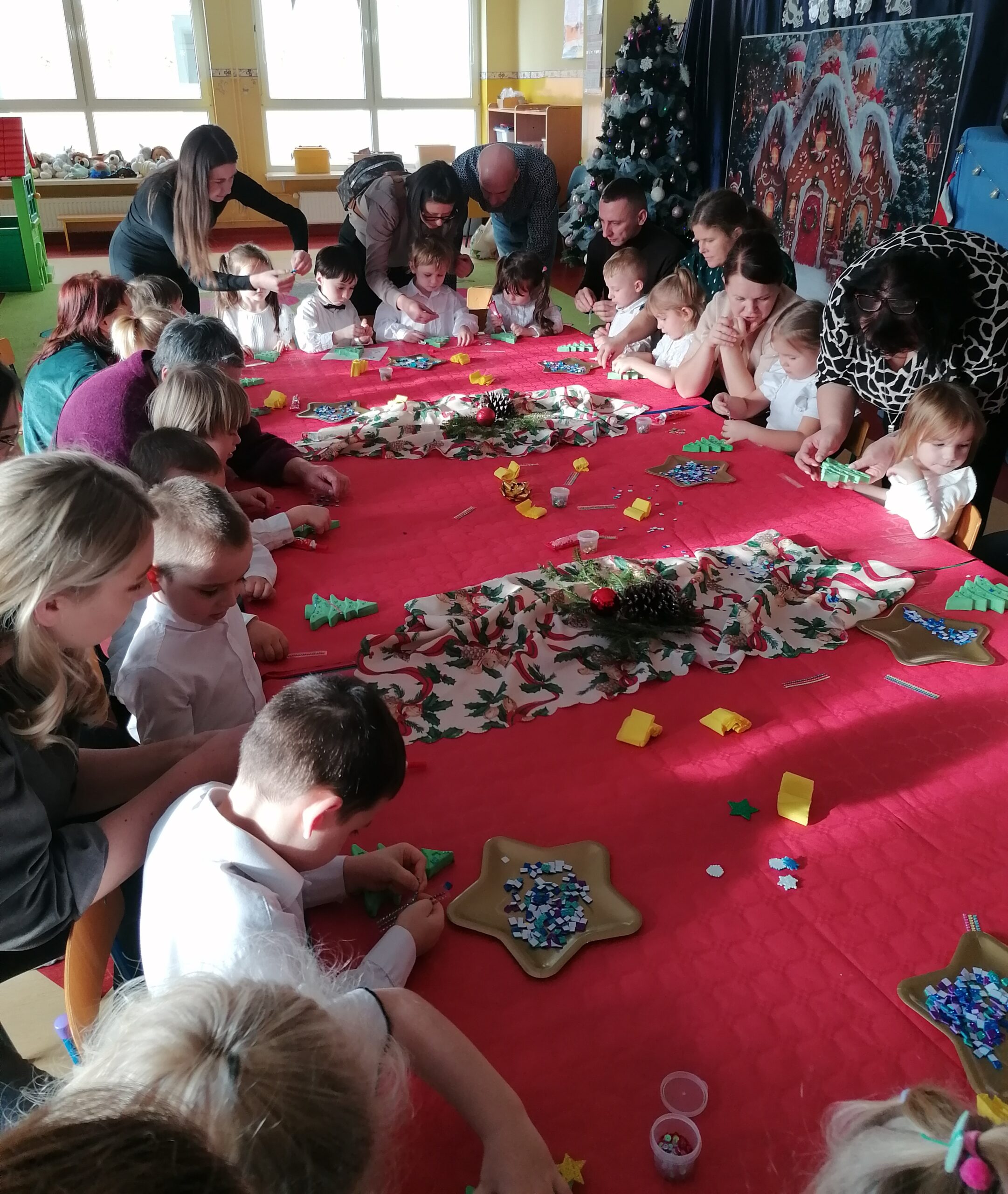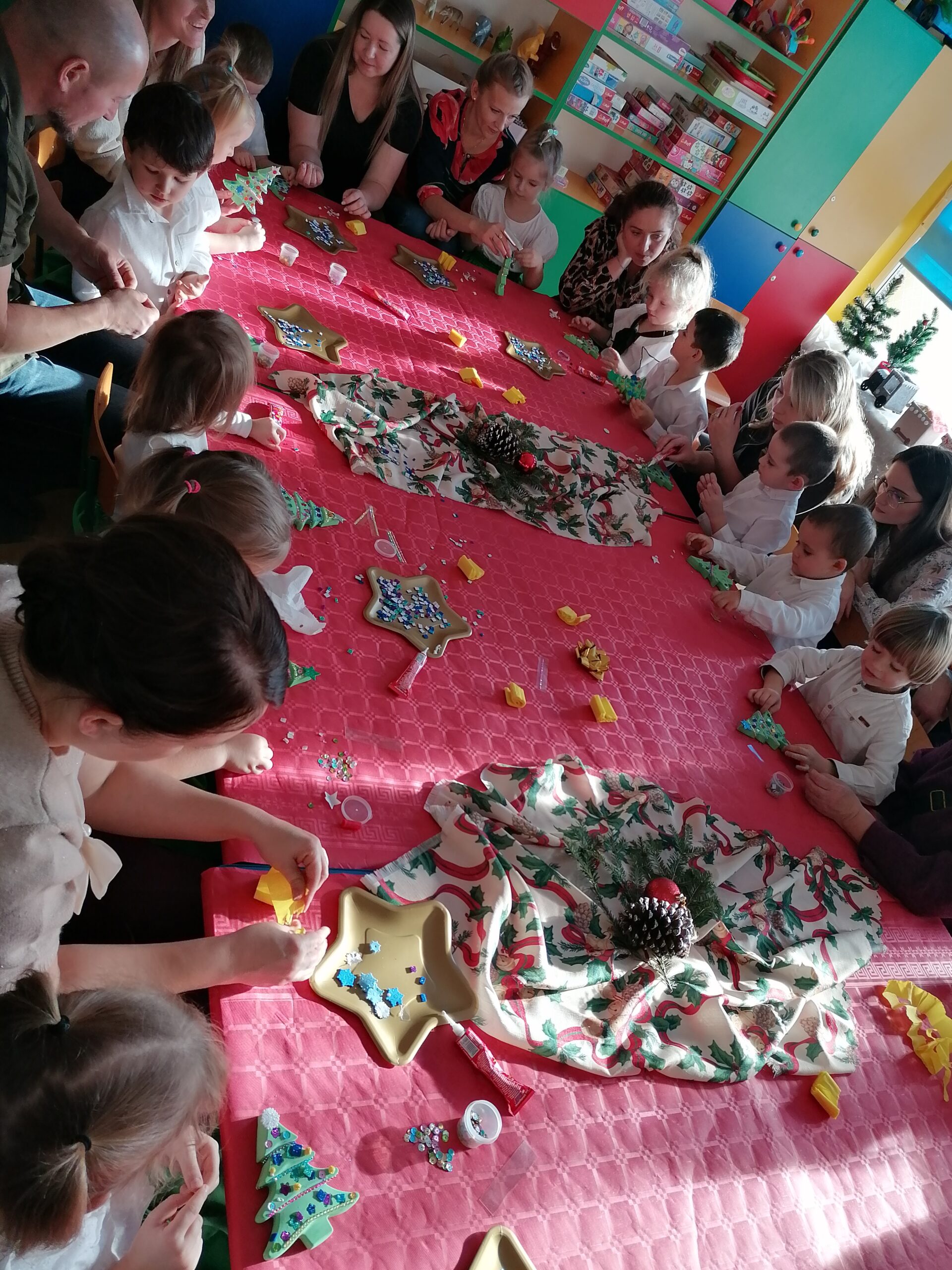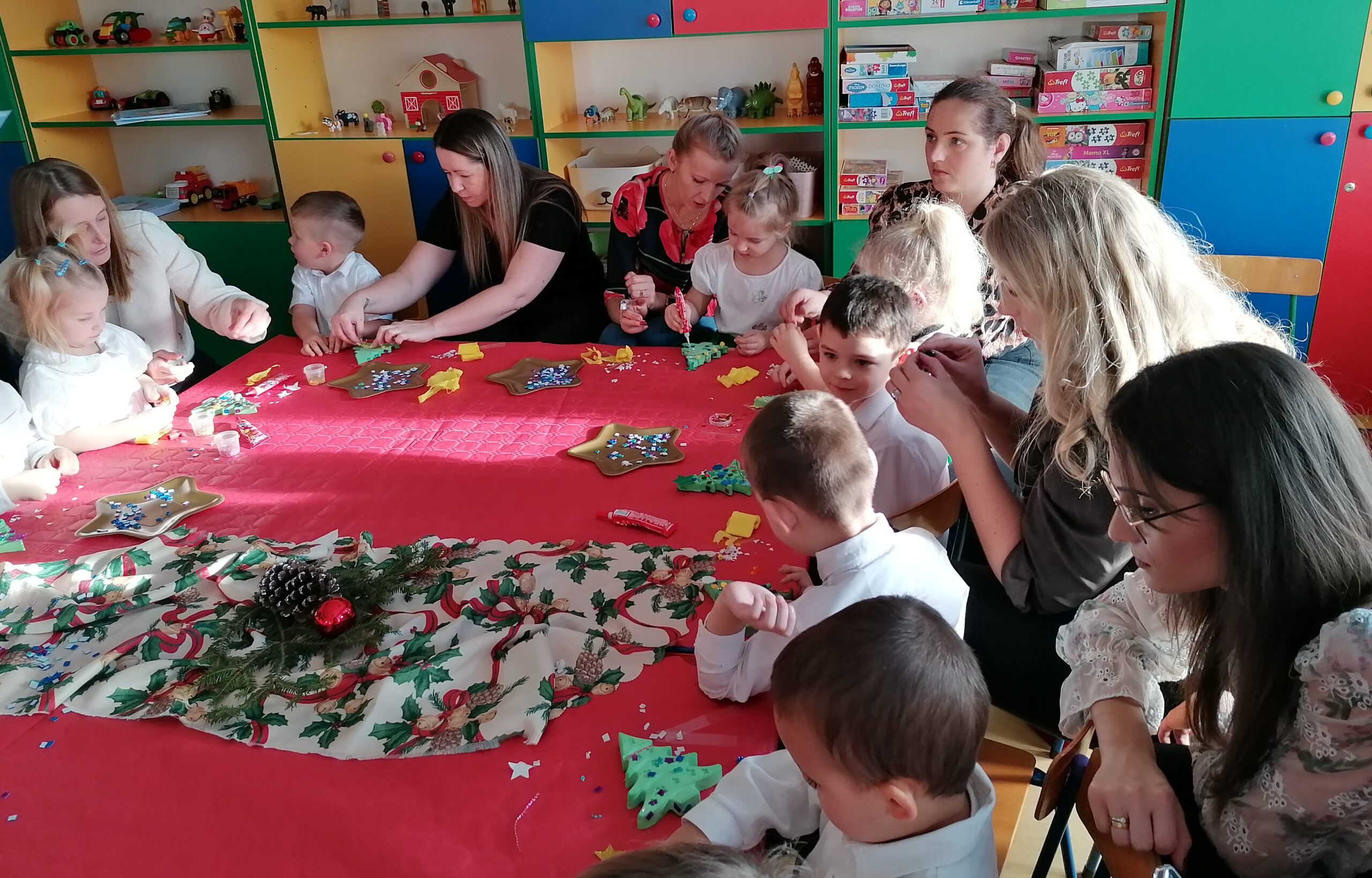 16 grudnia grupie Sasanki odbyły się warsztaty świąteczne. Dzieci wraz z rodzicami z zaangażowaniem dekorowały choineczki, wykorzystując kolorowe ozdoby oraz własnoręcznie wykonane dekoracje. Spotkanie przebiegło w radosnej, ciepłej atmosferze. Wspólna praca sprzyjała integracji grupy, a udekorowane choineczki stały się pięknym symbolem nadchodzących świąt. Dziękujemy Rodzicom za obecność i zaangażowanie.