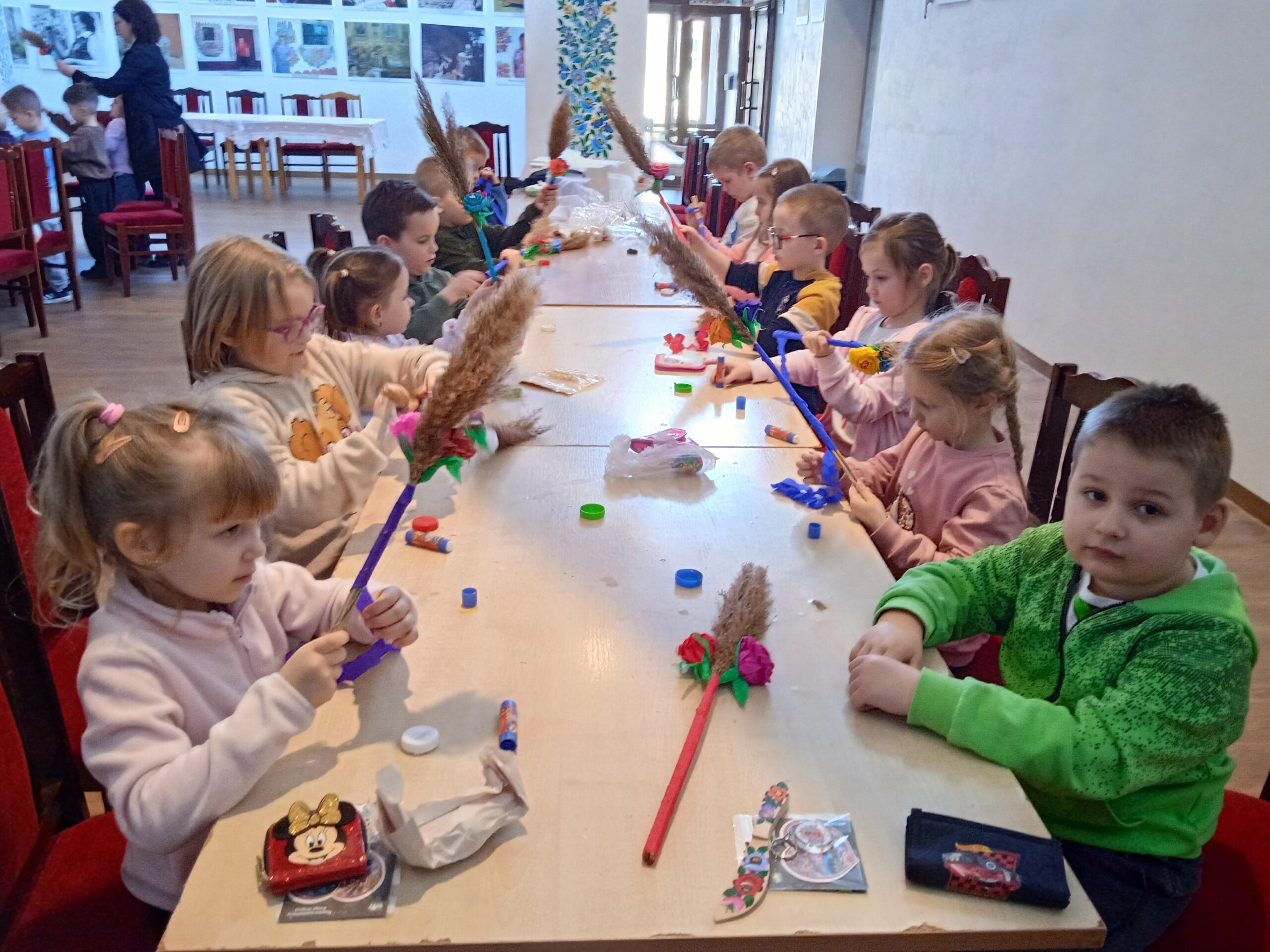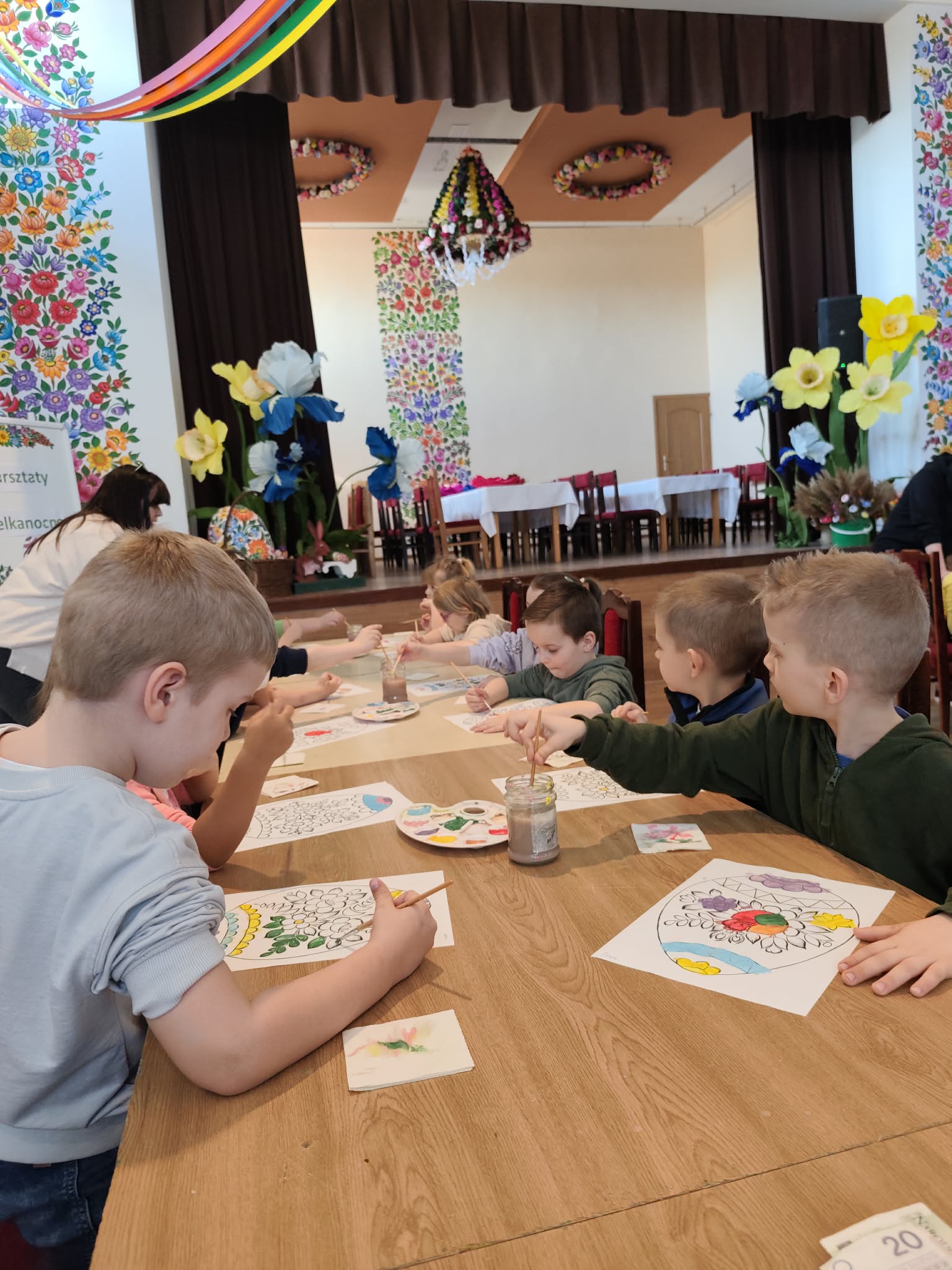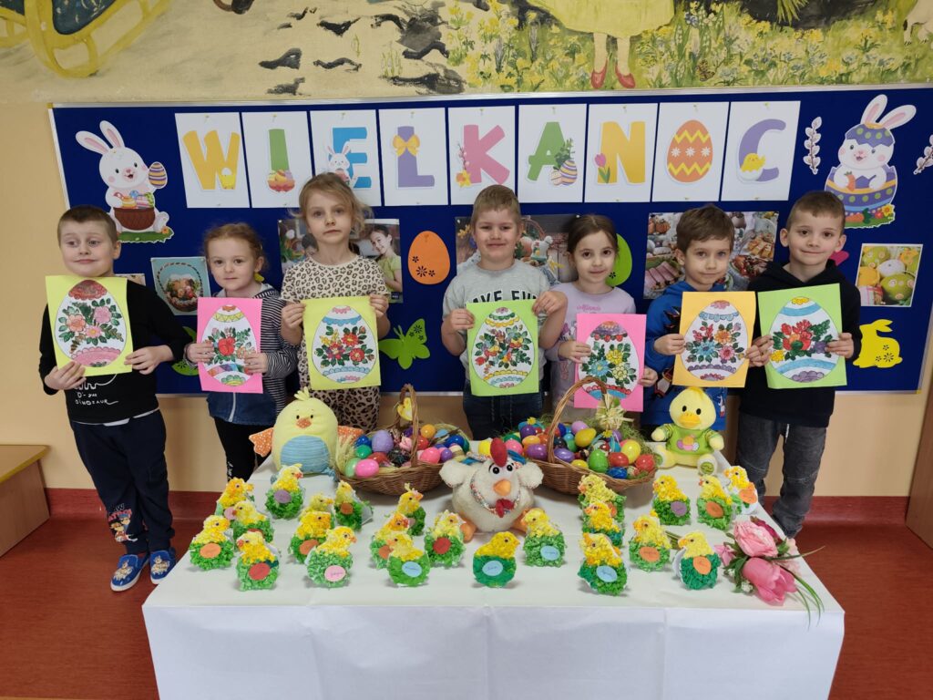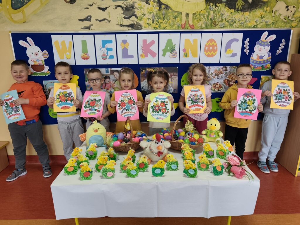 Grupa Szafirki wybrała się na wycieczkę do Zalipia – miejscowości słynącej z pięknie malowanych domów. Dzieci miały okazję obejrzeć wyjątkowe domki ozdobione tradycyjnymi, kolorowymi motywami kwiatowymi, które wzbudziły ich zachwyt i zainteresowanie sztuką ludową. Podczas pobytu odbyły się również warsztaty wielkanocne. Dzieci z zaangażowaniem tworzyły palmy wielkanocne oraz malowały jajka, rozwijając swoją kreatywność i zdolności manualne.