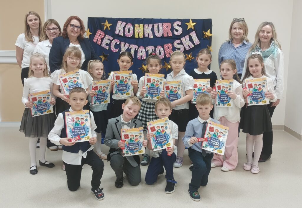 się 10.04.2026r. Z dwóch grup „0” wzięło udział 13 dzieci. Jury w składzie: Pani Dyrektor Magdalena Prędka, Pani Logopeda Anna Musiał oraz Pani Elżbieta Ozdoba- Bydłosz- kierownik działu gromadzenia zbiorów Miejsko-Gminnej Biblioteki Publicznej w Busku-Zdroju oceniało m.in. pamięciowe opanowanie tekstu, intonację i modulację głosu. Wszyscy uczestnicy zostali wyróżnieni, otrzymali dyplomy i nagrody.